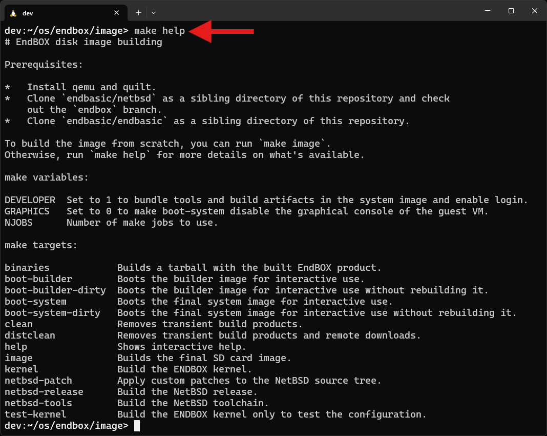 to glue together the patching of the NetBSD tree, the build of the NetBSD toolchain and release, the cross-compilation of EndBASIC for aarch64, and the bundling of all pieces together into a final disk image.Lessons learned: